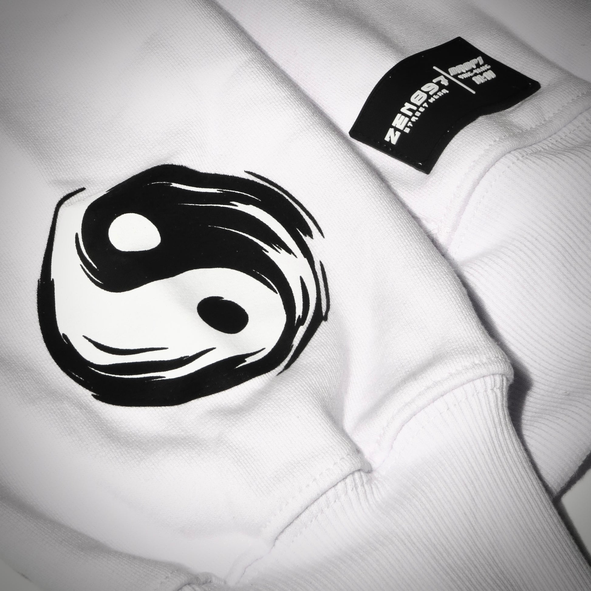 Este polerón blanco Yin-Yang es equilibrio y fuerza en calma. Hecho para los que iluminan con su energía. DROP 11:11 – colección limitada de ZEN897.